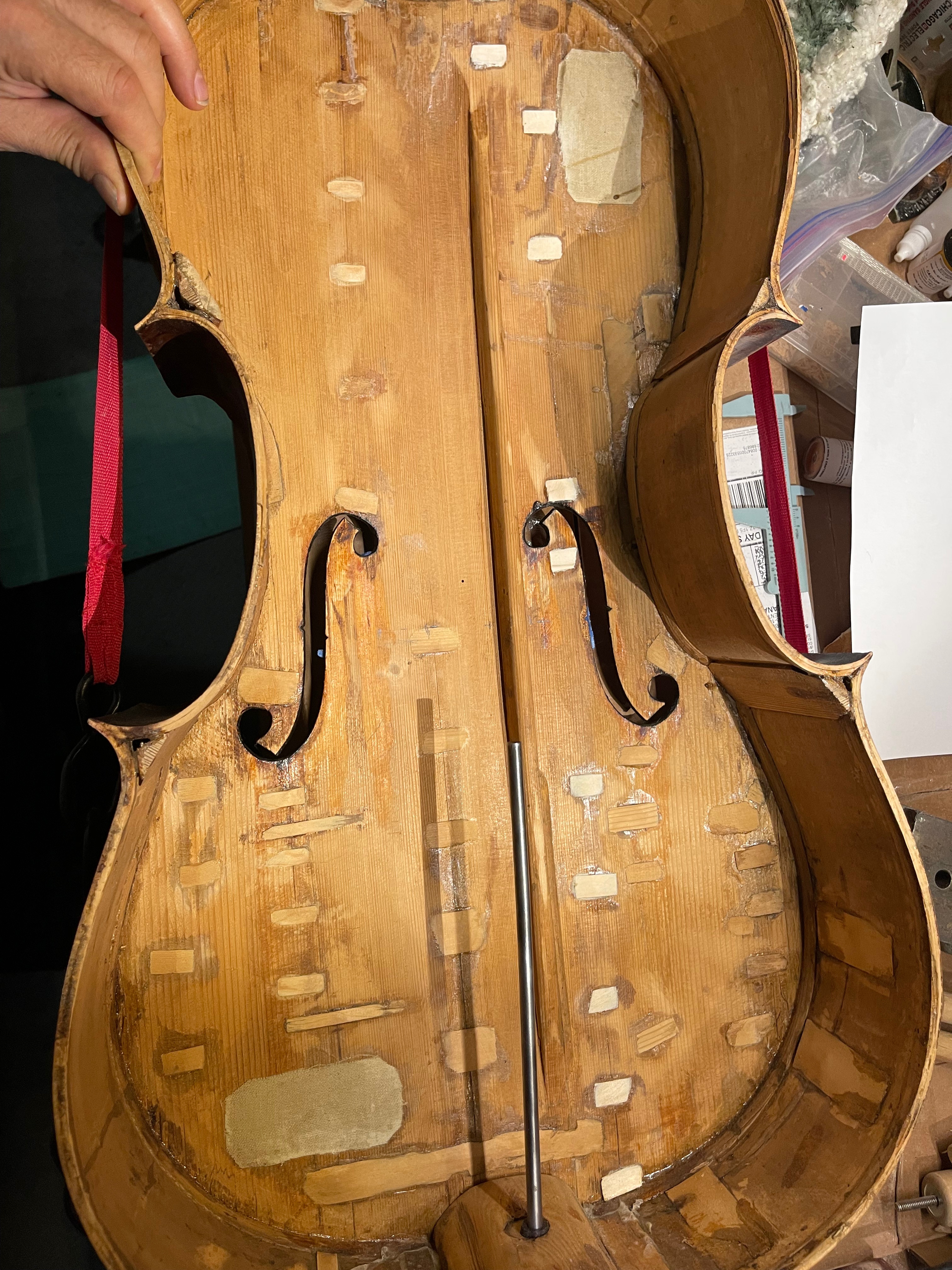 I believe in saving old well-played instruments. It started with woodwork at a young age, Matchbox derby in Cub Scouts, learning furniture refinishing while working in summer stock theater. Moved on to automotive restoration, then home restoration and furniture design. I found my way back to my passion for music in restoring old instruments. I wanted to pick up the cello as an interest, and my first used instrument arrived broken, which led me to many hours of research. This process continues to this day and, over many years, into the techniques applied to instrument creation and repair.